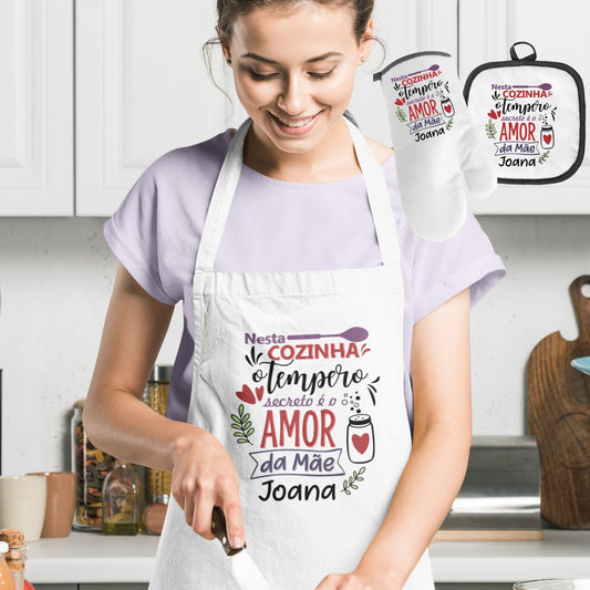 Avental e/ou Luva+Pega "O tempero secreto é o amor"
