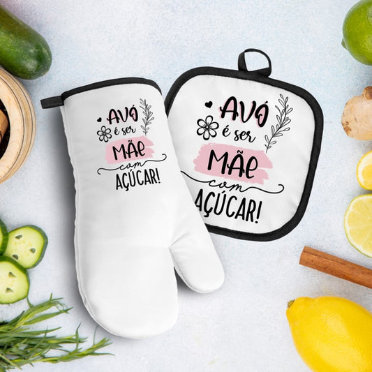 Avental e/ou Luva+Pega "Avó é ser Mãe com Açúcar"