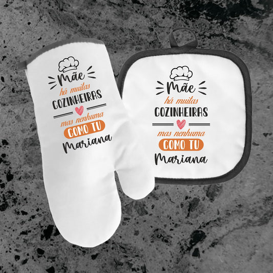 Avental e/ou Luva+Pega "Mãe há muitas cozinheiras mas nenhuma como tu"