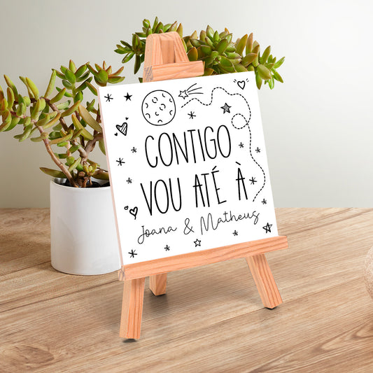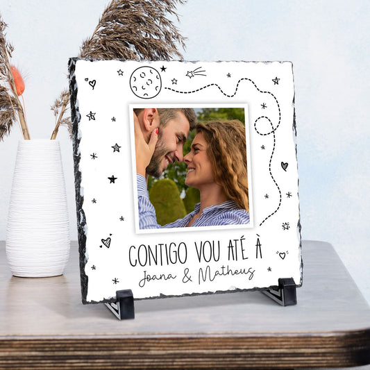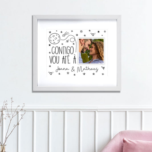 Moldura de Cristal 3D c/ caixa "Contigo vou até à lua"