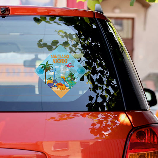 Tapa-sol e/ou placa para carro "Família Dinossauros"