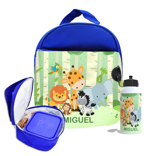 Mochila e/ou Lancheira e/ou Garrafa "Animais da Selva"