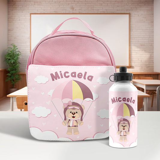 Lancheira e/ou Garrafa "Ursinho Paraquedista"