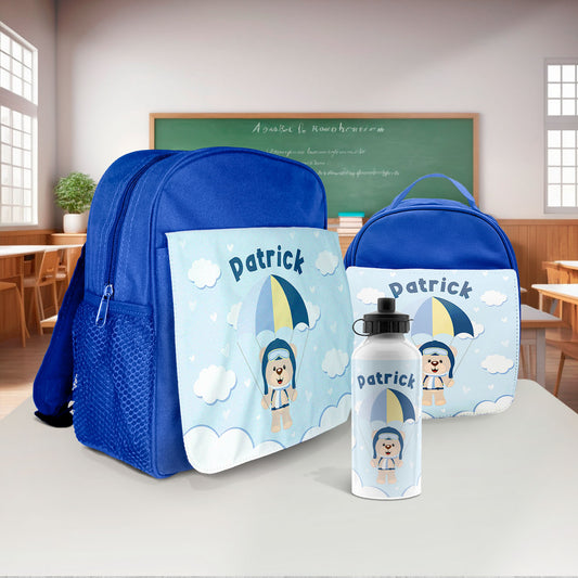 Mochila e/ou Lancheira e/ou Garrafa "Ursinho Paraquedista"