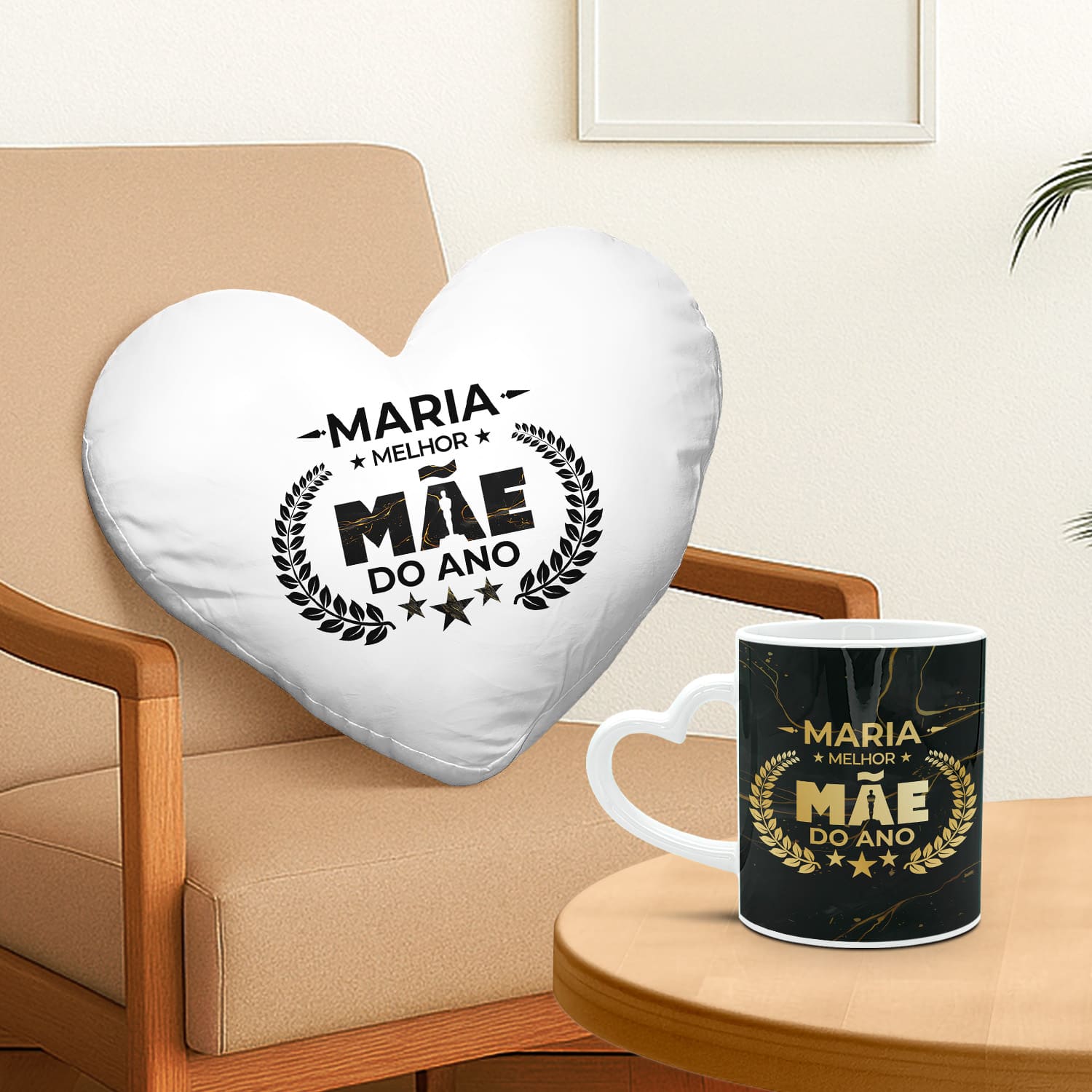 Surpreenda com este conjunto almofada e caneca personalizado.