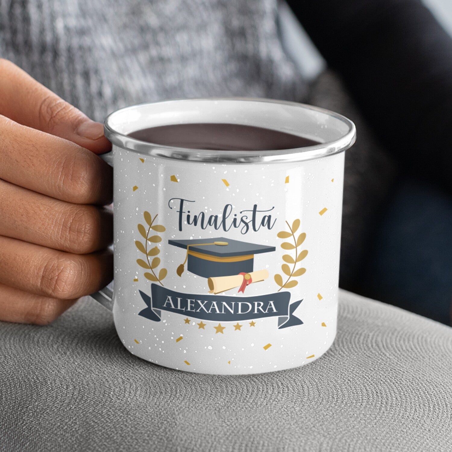 A caneca de esmalte "Congratulations" é personalizada com nome(s).