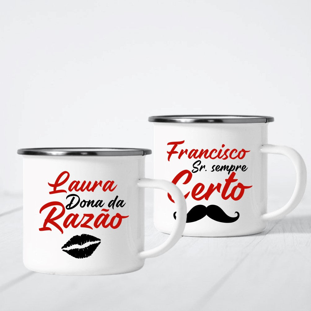Caneca de Esmalte "Dona da razão vs. Sr. sempre certo"