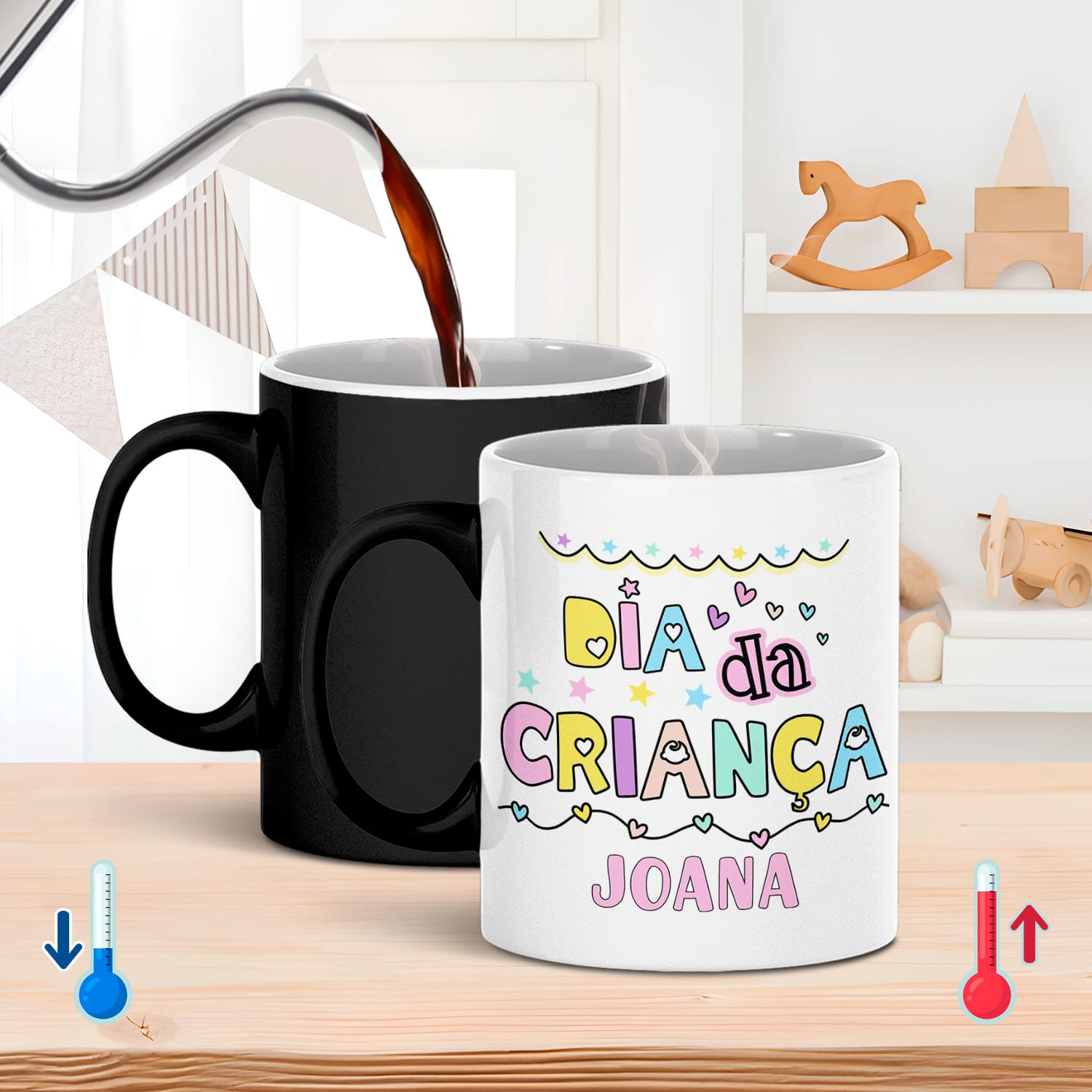 A caneca mágica "Dia Mágico" é personalizada com nome e fotografia.