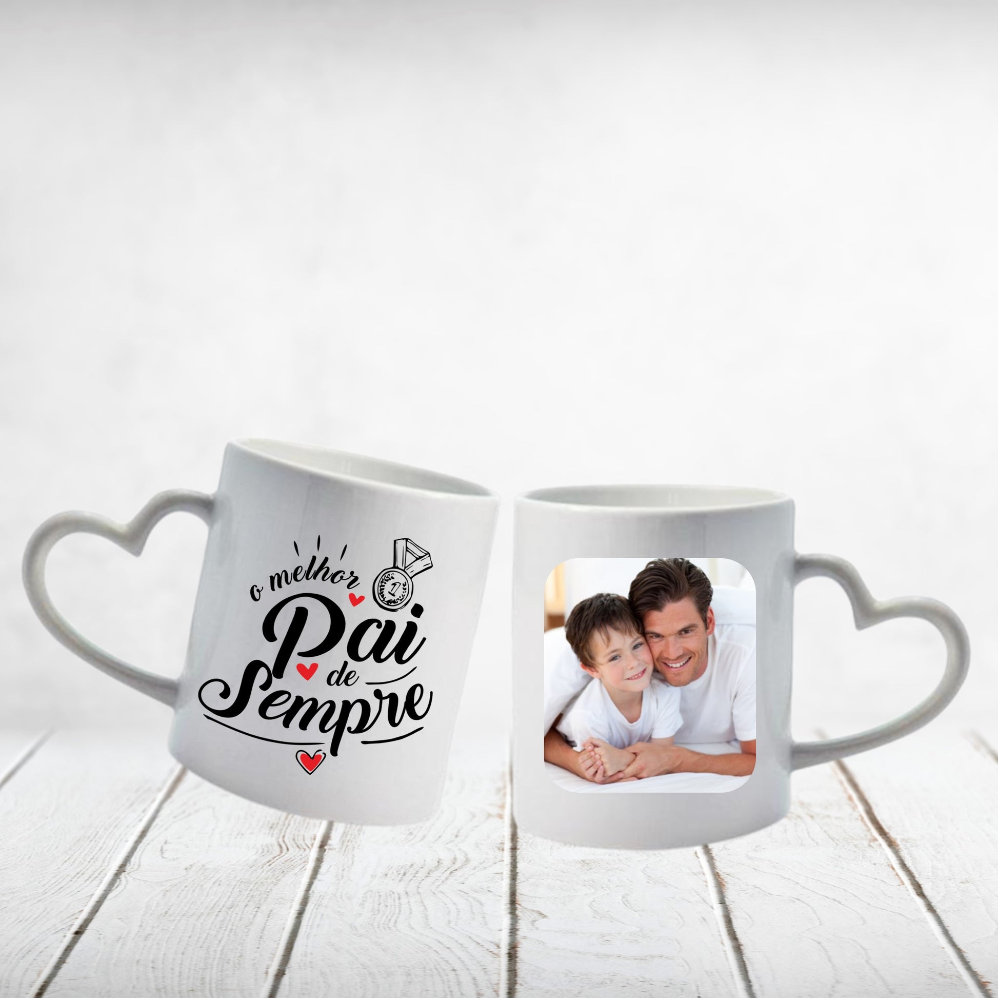 A caneca "O melhor pai de sempre" poderá ser personalizada com fotografia. Tem possibilidade de personalizar com o grau de parentesco pretendido (ex.: "pai", “avô”, “genro”, “marido”, “filho”, “sogro”, …).