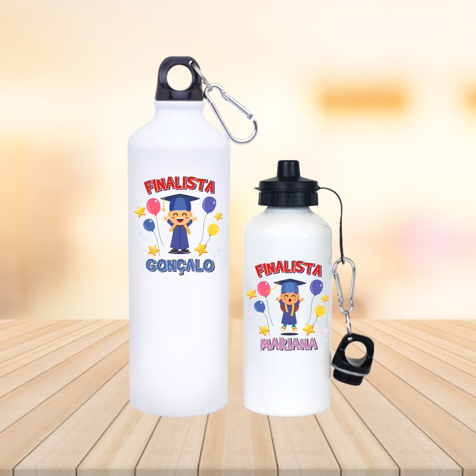 A garrafa "Finalista escolar" é personalizada com nome(s).