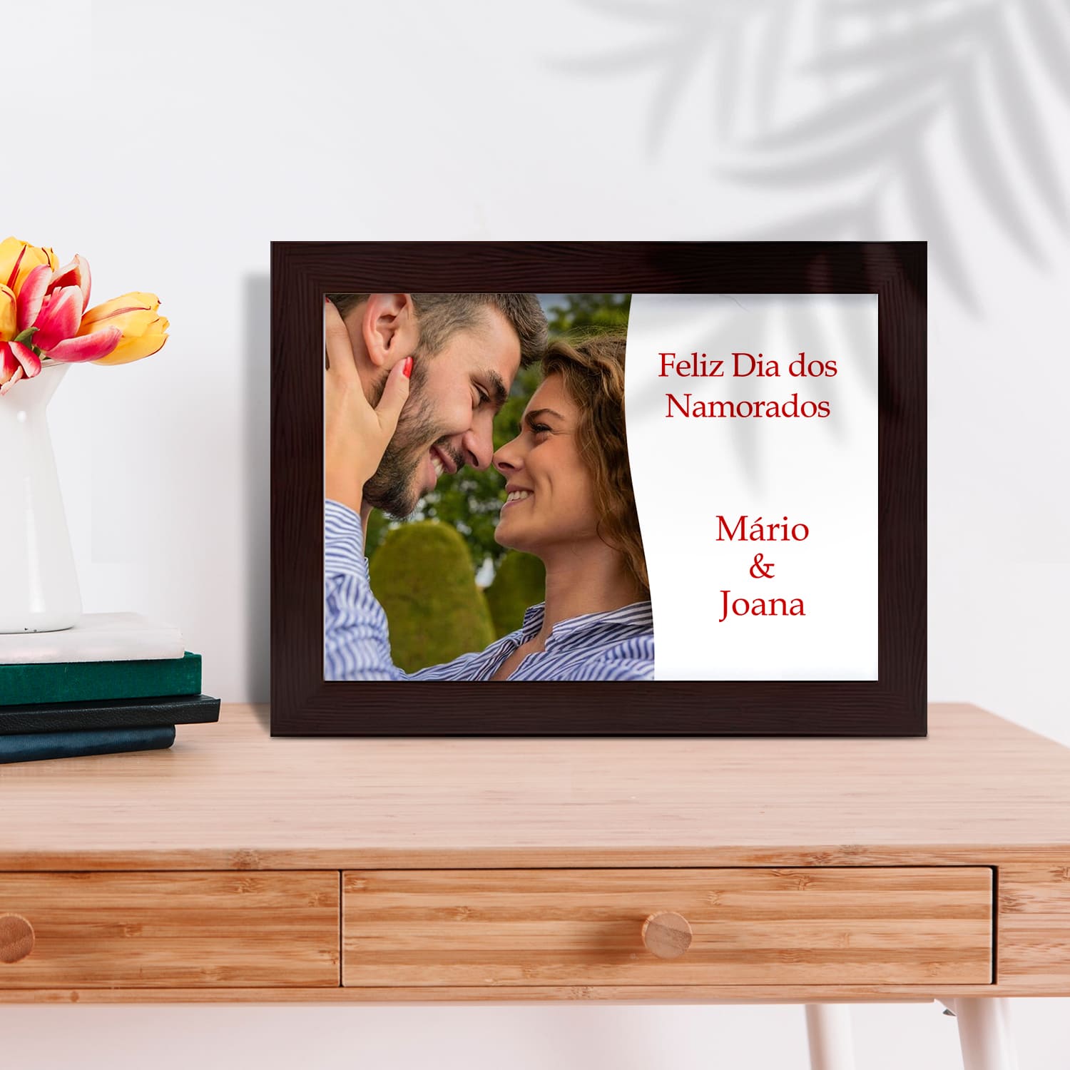 A moldura "Dia dos Namorados" é personalizada com frase, fotografia e nome(s).