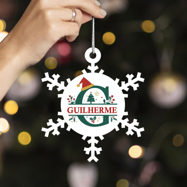 O pendente floco "Letras Natalícias" é personalizado com nome(s). A letra maiúscula será a inicial do primeiro nome indicado.