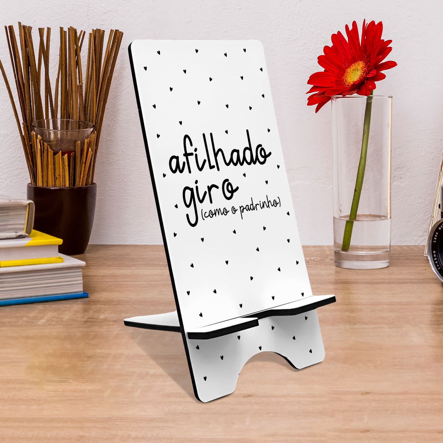 Surpreenda com um suporte de telemóvel para que o(a) felizardo(a) que o receber coloque o telemóvel. Descubra o poder de oferecer amor com este excelente presente.