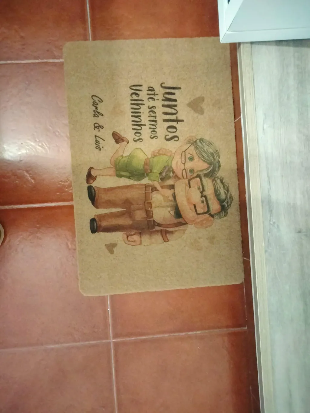 O tapete de entrada "Os Melhores Moram Aqui" é personalizado com grau de parentesco e nome(s).